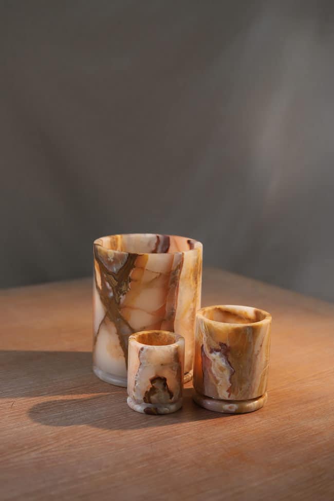 De collectie van Zaconi staat bekend om tijdloze, pure en eigentijdse ontwerpen.  Bij Zaconi worden alleen hoogwaardige materialen gebruikt. De objecten zijn gemaakt van Onyx, een natuurlijke, minerale en zeer exclusieve steensoort die prachtig het licht verspreidt.  Elk object wordt met de hand gemaakt.